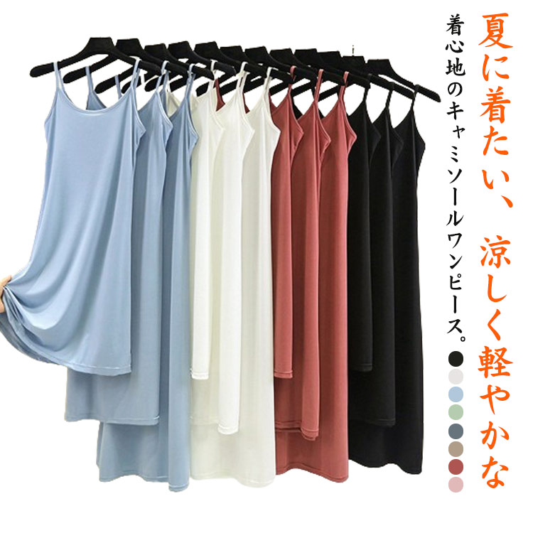 ルームウェア 大人 キャミソールワンピース ワンピース シンプル レディース ショート ミディアム インナーワンピース 夏 キャミソール 選べる着丈 ノースリーブ ロング カジュアル 大きいサイ 無地