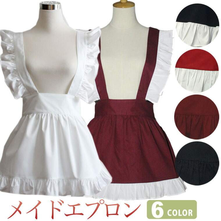 フリル エプロン バッククロスフリル コスプレ カフェメイドコスチューム レディース ホワイト ブラック ロリータ メイドカフェ