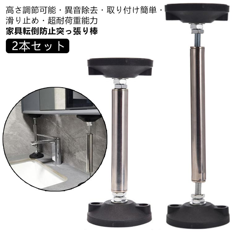 突っ張り棒 保護パッド 2本セット 家具転倒防止 伸縮 テーブル 両面テープ付き 地震対策 冷蔵庫 高さ4.2~11cm 防災グッズ 取付簡単 転倒防止 狭い隙間用 タンス 家具固定用 食 耐震ポール