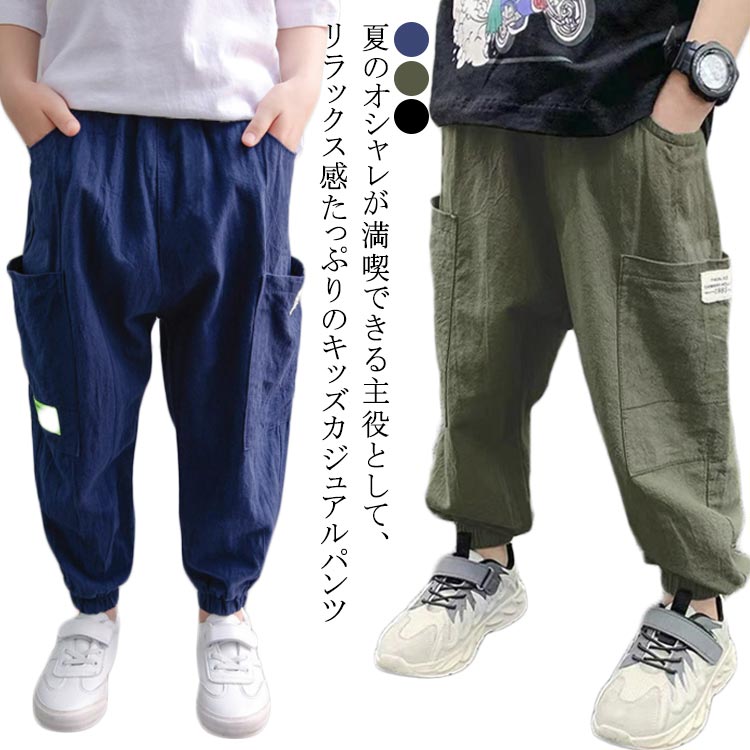 夏 虫よけ ロングパンツ 子供パンツ 裾ゴム 男の子 シンプル 綿カジュアルパンツ 長ズボン 薄手 ゆったり ウエストゴム 小学生 通園 キッズサルエルパンツ 中学生 ジュニア