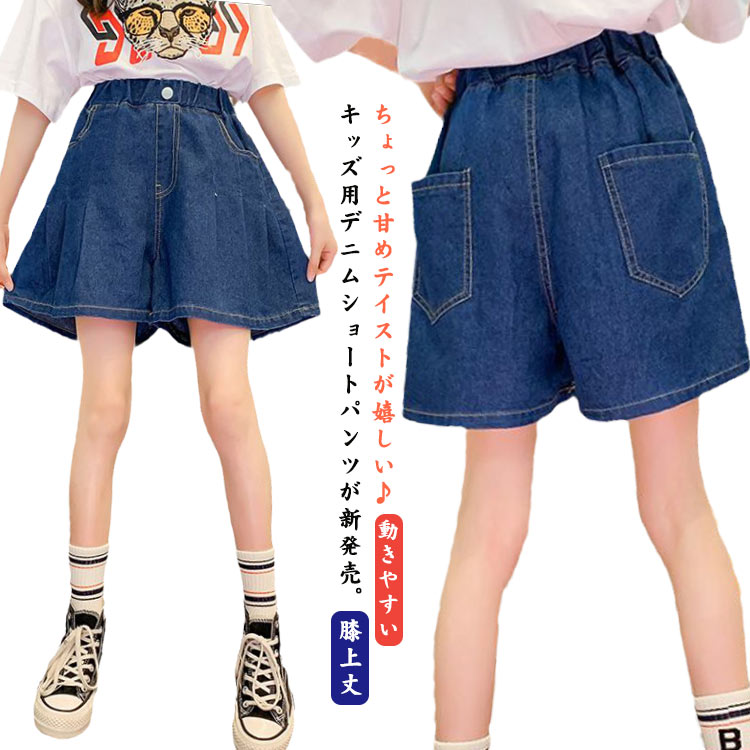 春 デニム デニムショートパンツ 子供 デニムパンツ ショートパンツ キュロットパンツ フレアパンツ ウエストゴム キッズ 女の子 短パン 膝上丈 大きいサイズ ジュニア シンプル 子供服 動き 無地