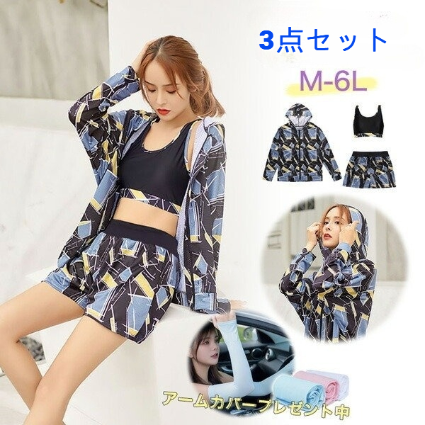 \/水着 レディース フィットネス水着 体型カバー セパレート 3点セット ぽっちゃり水着 大きいサイズ ラッシュガード タンキニ ママ水着 おしゃれ 海 露出控えめ 韓国 30代 40代 5 20代