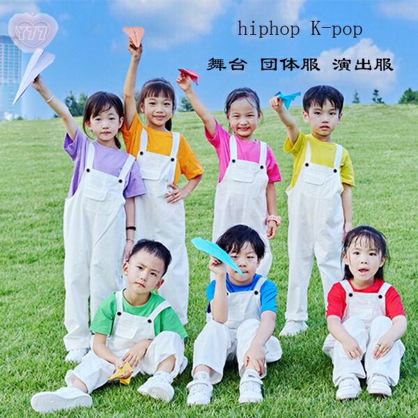 9色選べる ダンス衣装 キッズダンス セットアップ 半袖シャツ+オーバーオール 男の子 女の子 舞台 団体服 演出服 男女兼用 サロペット パンツ かわいい 運動会、応援団、練習着