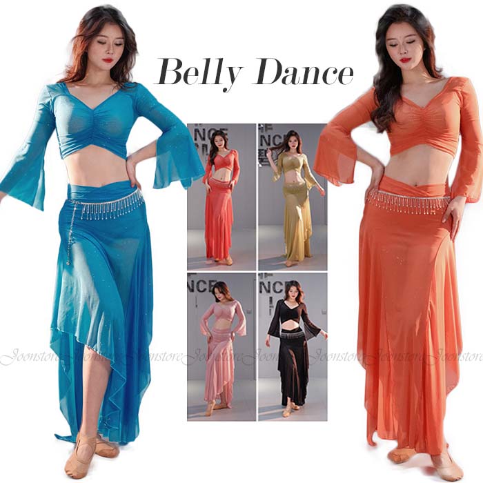ベリーダンス 衣装 上下セット レデイース ベリーダンス レッスン着 セットアップ ショート丈トップス スリット入り ロングスカート ベリーダンス 衣装セット