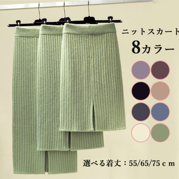 2タイプ スリットニットスカート バックスリット 5分丈 7分丈 9分丈