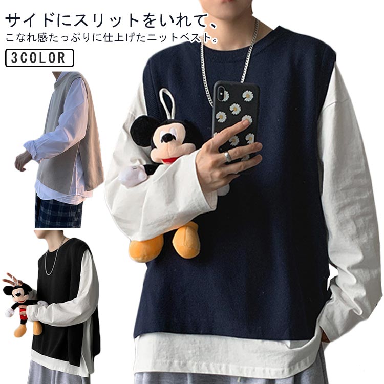 セーター 春 おしゃれ 夏 メンズ ゆったり トップス ベスト プルオーバー サイドスリット スクール サマーニット ニットセーター オフィス ビジネス ゴルフウェア 男性 ニットベスト カジュアル