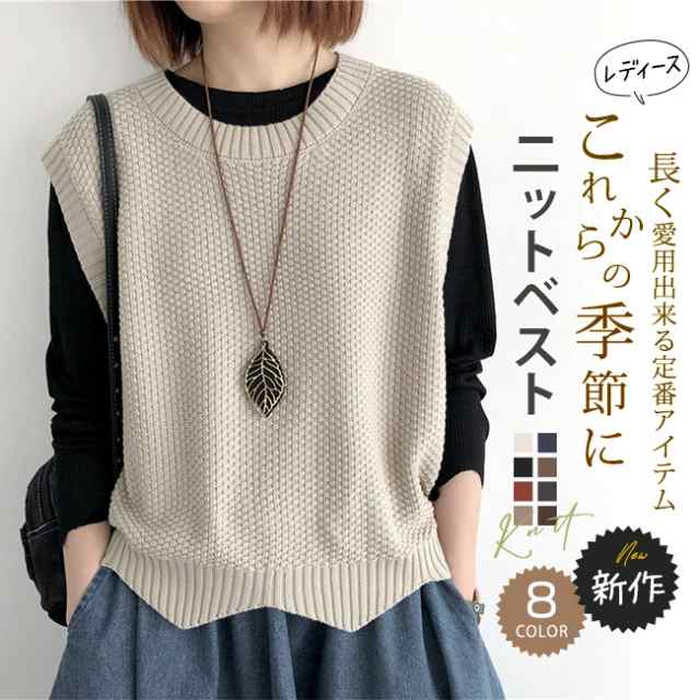 ニットベスト レディース セーターベスト 秋 冬 プルオーバー トップス 無地 シンプル 丸首 ニット セーター ノースリーブ おしゃれ レトロ 可愛い 編み風 重ね着 通勤 クルーネック ゆったり