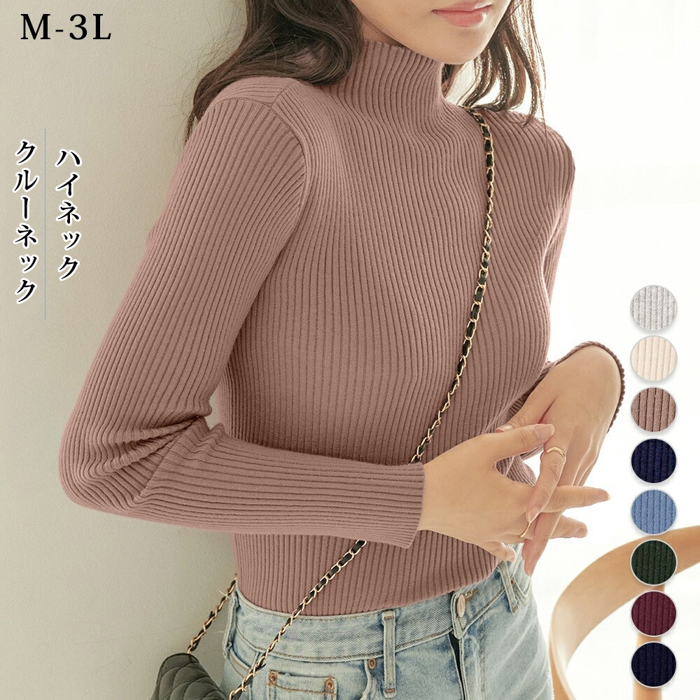 ニットセーター トップス ハイネック ニット レディース カットソー 春秋冬 着痩せ きれいめ 履きやすい 生地 綿 おしゃれ ストレッチ リブニット 長袖