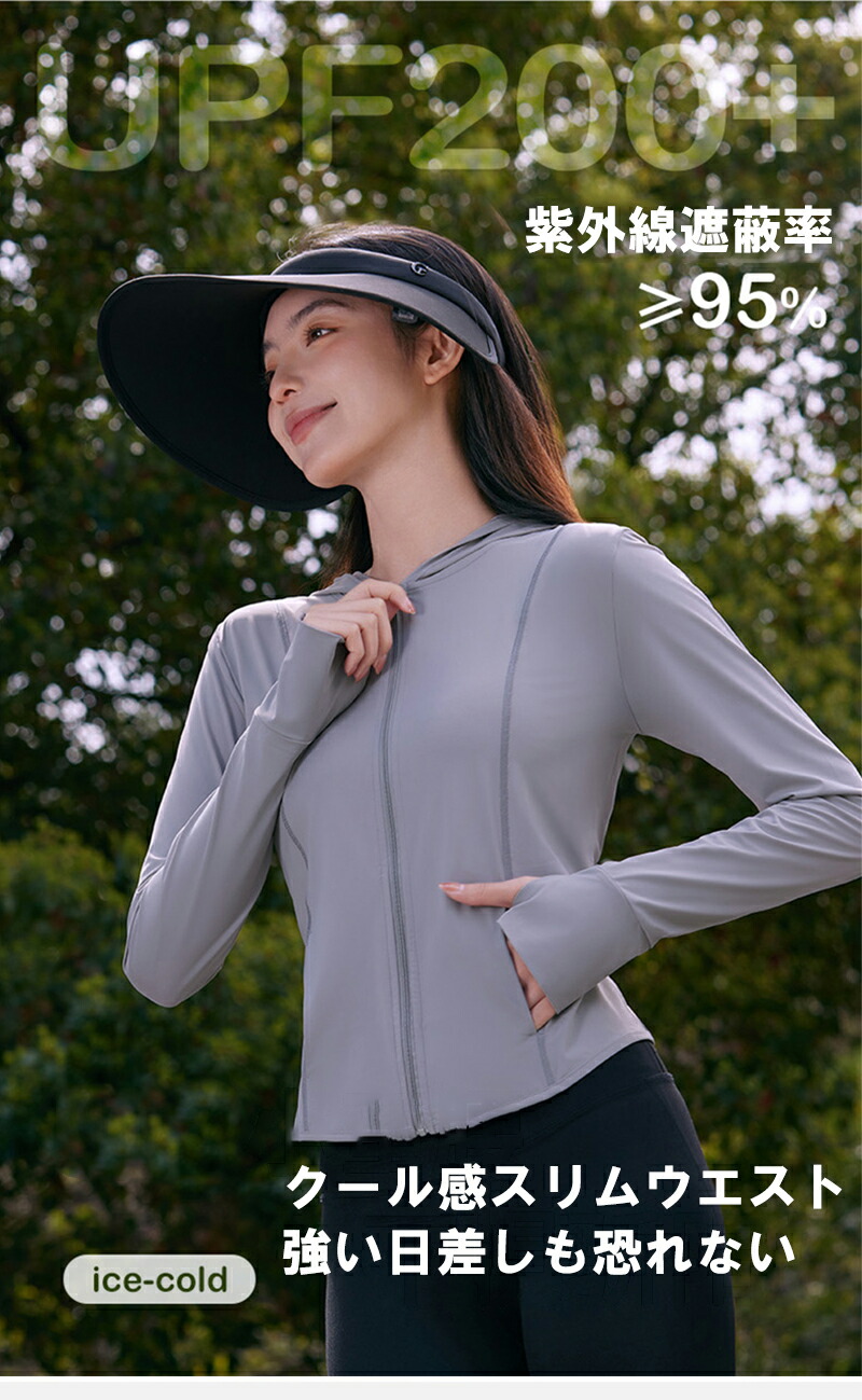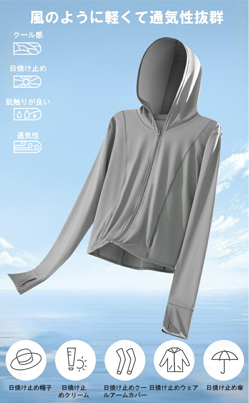 UV パーカー 接触冷感 肌触り 日焼け防止 パーカー 涼しい uv カット パーカー フード付き 長袖 指穴付き 紫外線対策 フィット感 ラッシュガード 春 夏 薄手 軽量 アウトドア レディースファッション