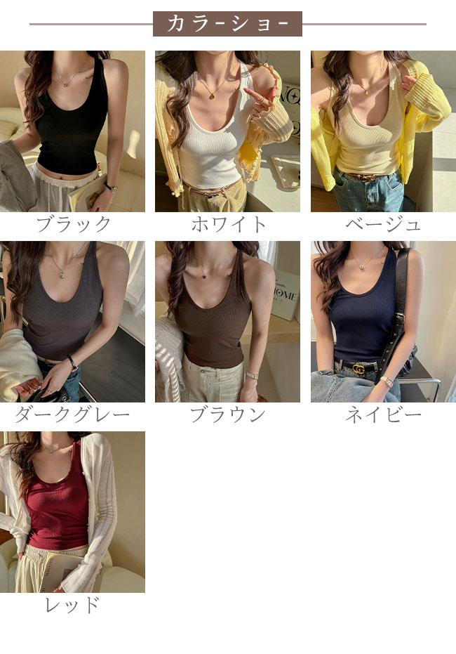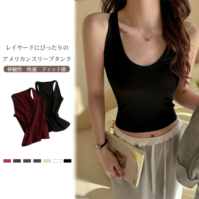 タンクトップ レディース インナー 肌着 下着 アメリカンスリーブタンク リブ 無地 Uネック 伸縮性 着心地良い 着回し カジュアル ストレッチ 重ね着 レイヤード タンク キャミソール 定番 オー