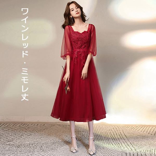 カラー: ワインレッド(ミモレ丈) ワインレッド(ロング丈) レッド(ミモレ丈) レッド(ロング丈)