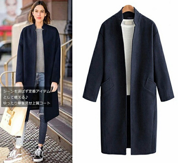 レディース チェスターコート ロングコート 防寒 厚手 中綿 オーバーサイズ ビッグシルエット スリットデザイン カジュアル お洒落 高見え 20代~40代 ブラック ネイビー グレー カーキ 大きい~小さいサイズ 三シーズン対応