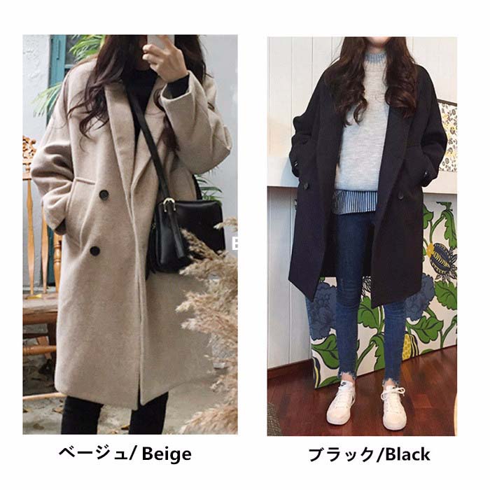 チェスターコート レディース 大きいサイズ 冬春兼用アウター ステンカラー ロング丈 中綿入り ラグランスリーブ 暖か カジュアル シンプル 韓国風 ブラック/ベージュ S~3L