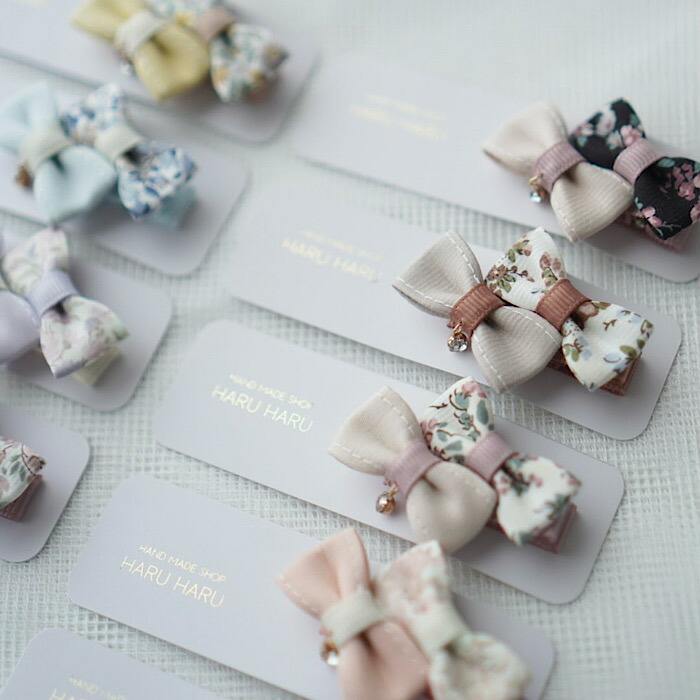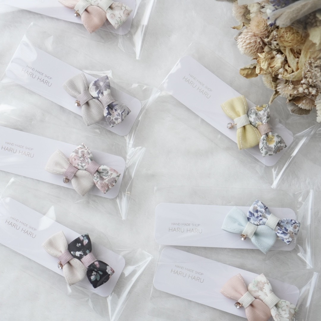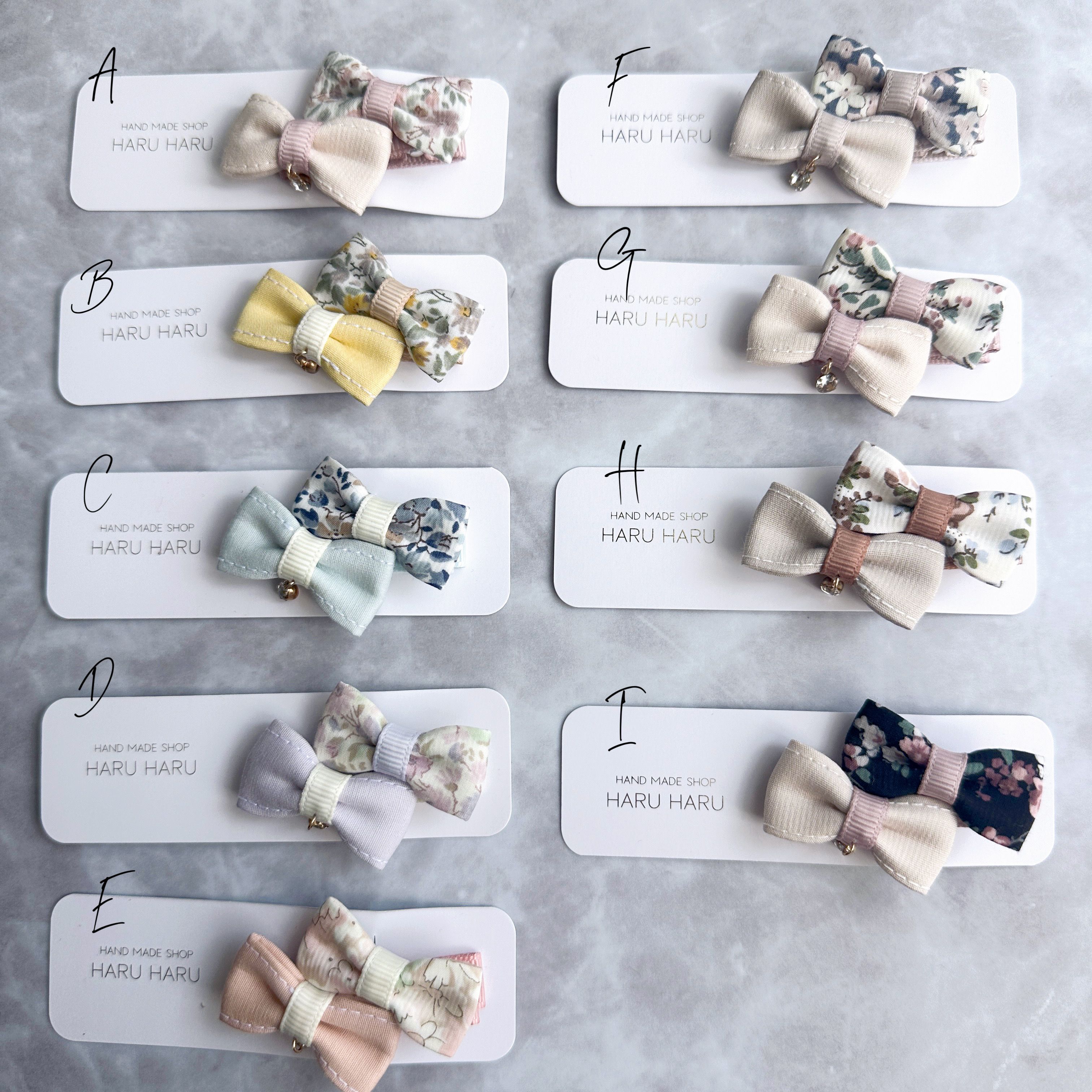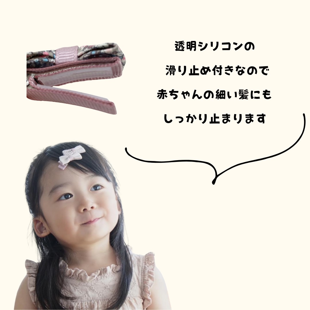 ダブルリボン ヘアクリップ 滑り止め付き ベビー 赤ちゃん キッズ ヘアアクセサリー 痛くない 薄毛対応 リバティ花柄 6色展開 ミニサイズ プレゼント