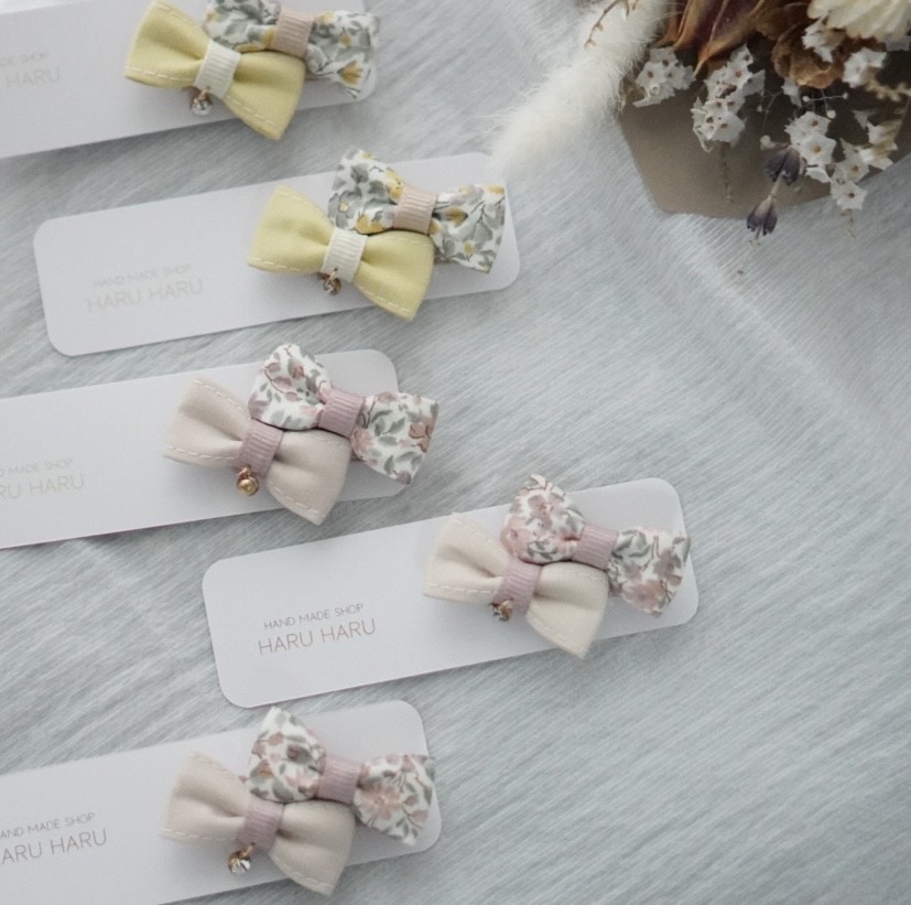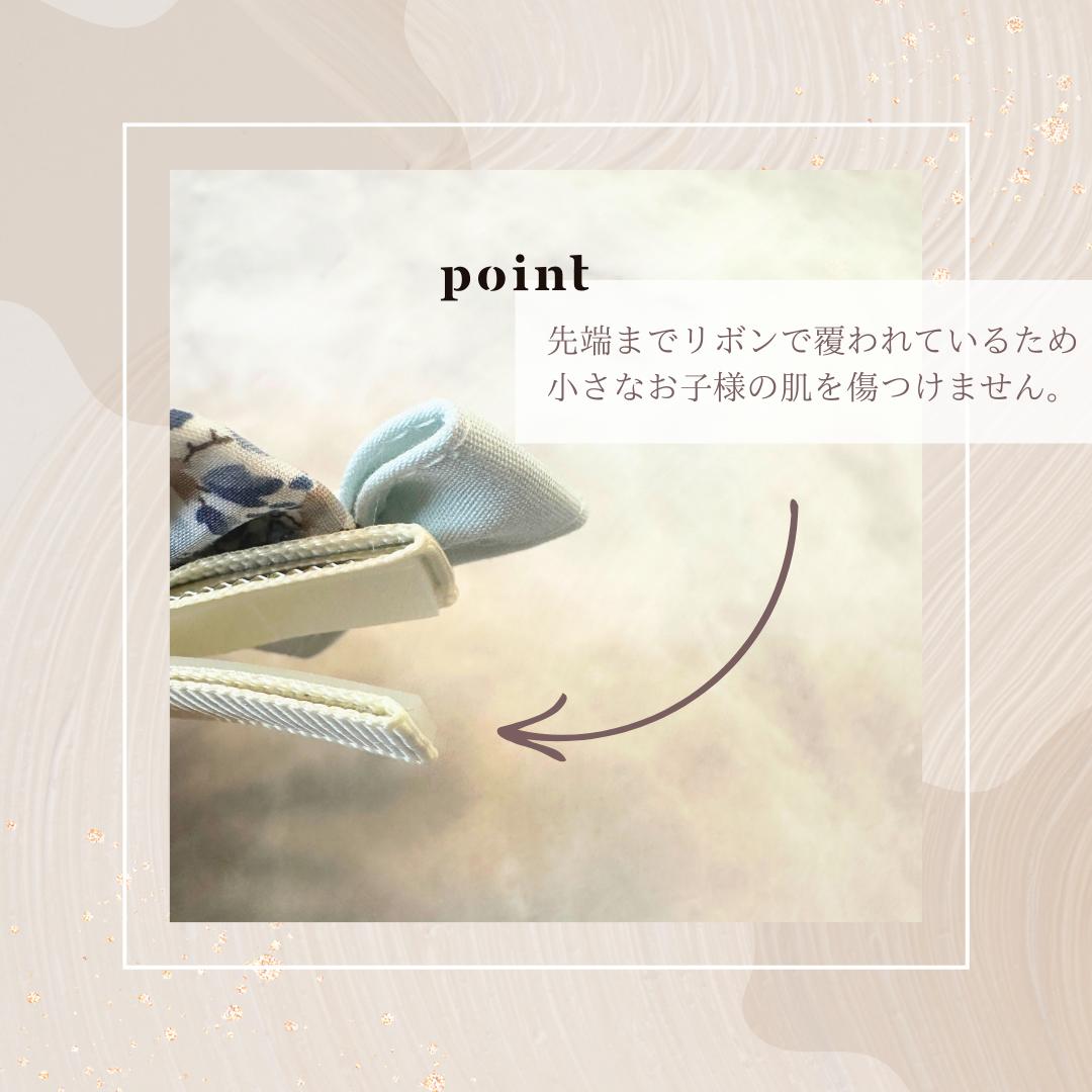 特徴 赤ちゃんの細い髪の毛もしっかりと留めてくれるダブルリボンのヘアクリップです。