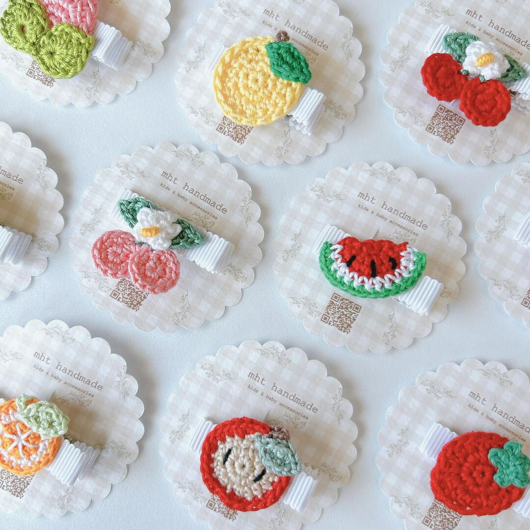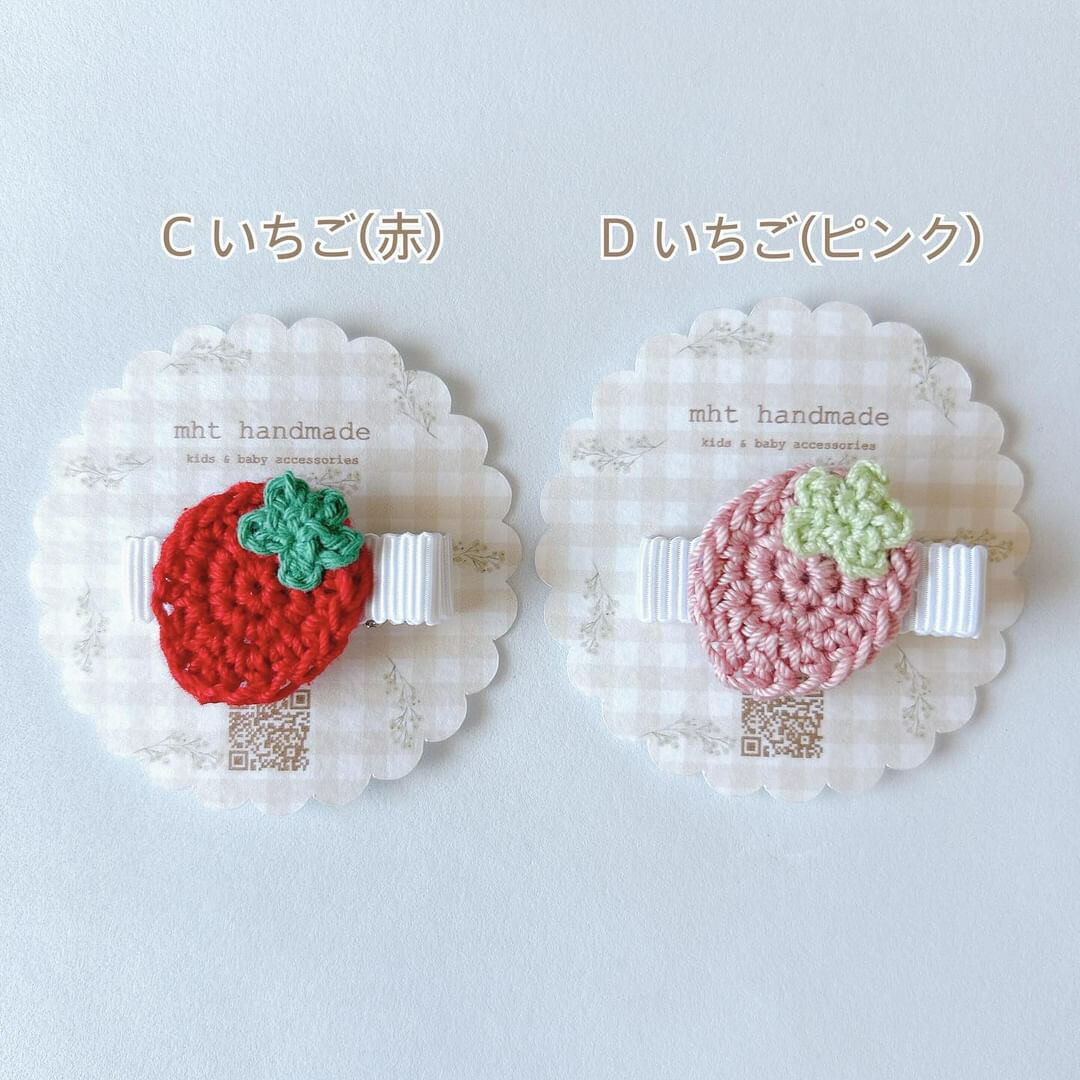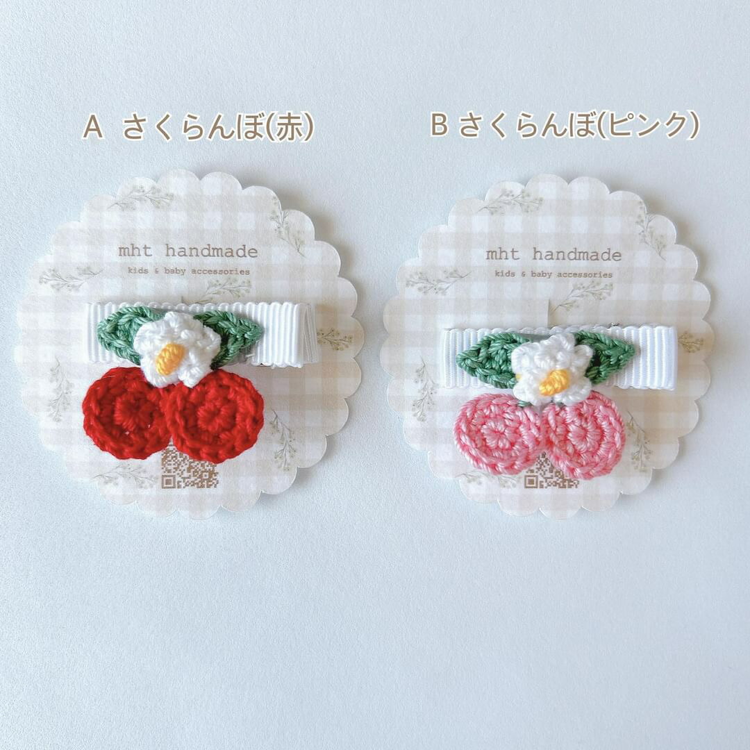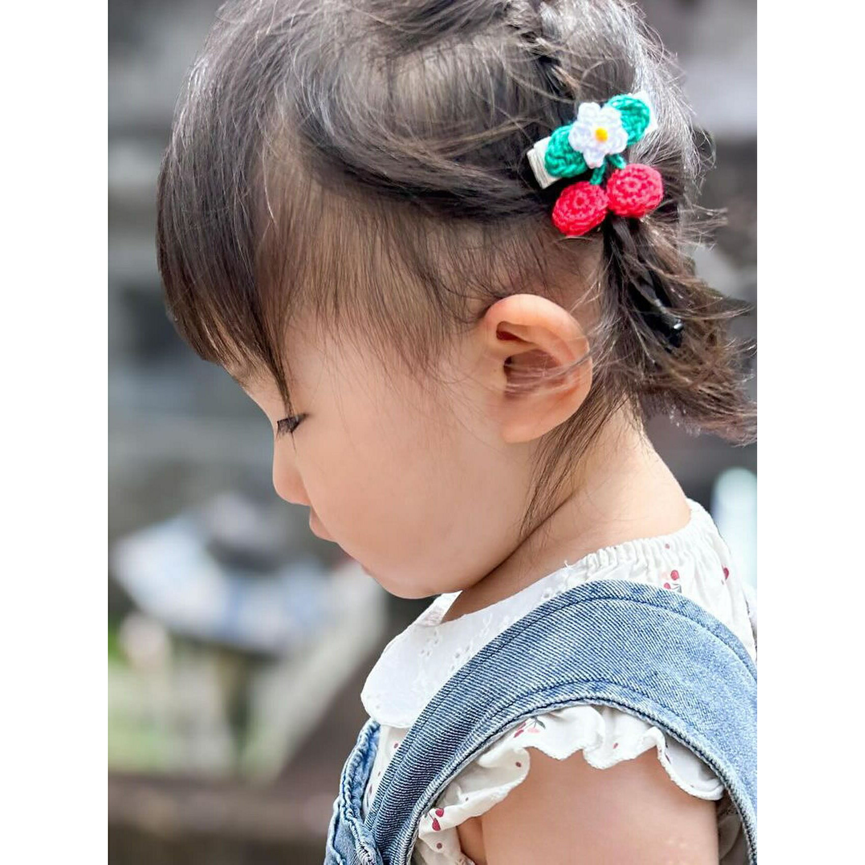 さくらんぼクリップ ベビー ヘアクリップ かぎ編み ハンドメイド完成品 赤ちゃん 子供用 滑り止め付き 薄毛対応 3色展開(ピンク/レッド/赤) ギフト 出産祝い プレゼント