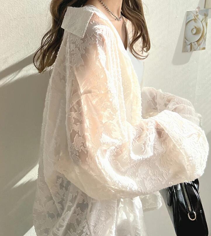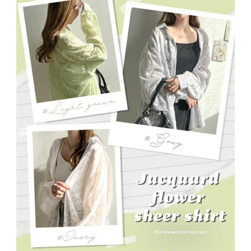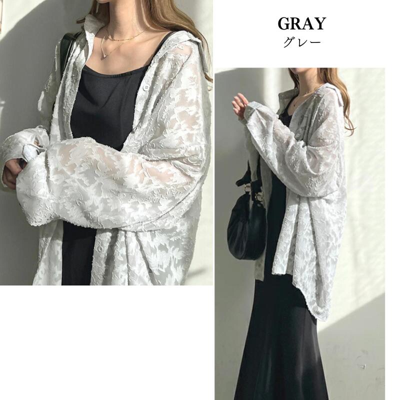 ジャカード フラワー シアーシャツ シ レディースファッション 42%Off ホワイト グレー ライトグリーン