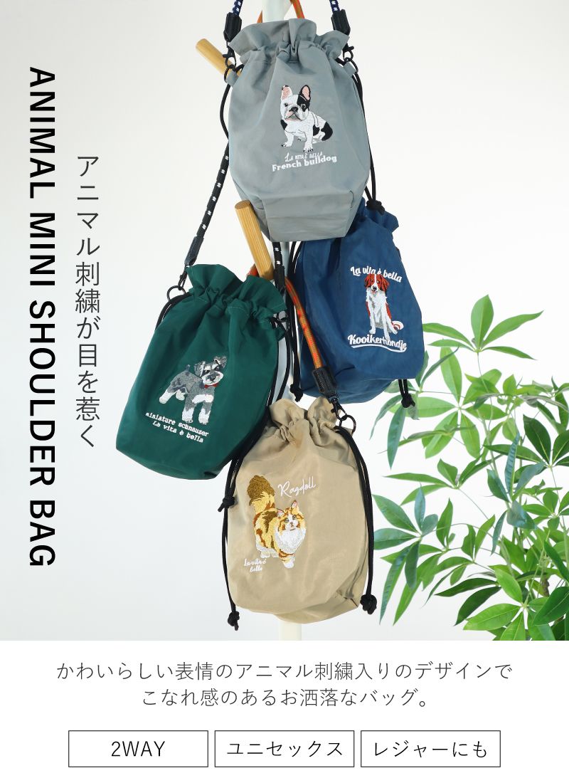 \SNSで話題/ 巾着袋 ドローストリングバッグ 猫ナイロン 巾着ショルダー ワンマイル 軽量 バッグ アニマルショルダーバッグ 犬 猫 アニマル刺繍 旅行 サブバッグ レディース アニマル 巾着 シ