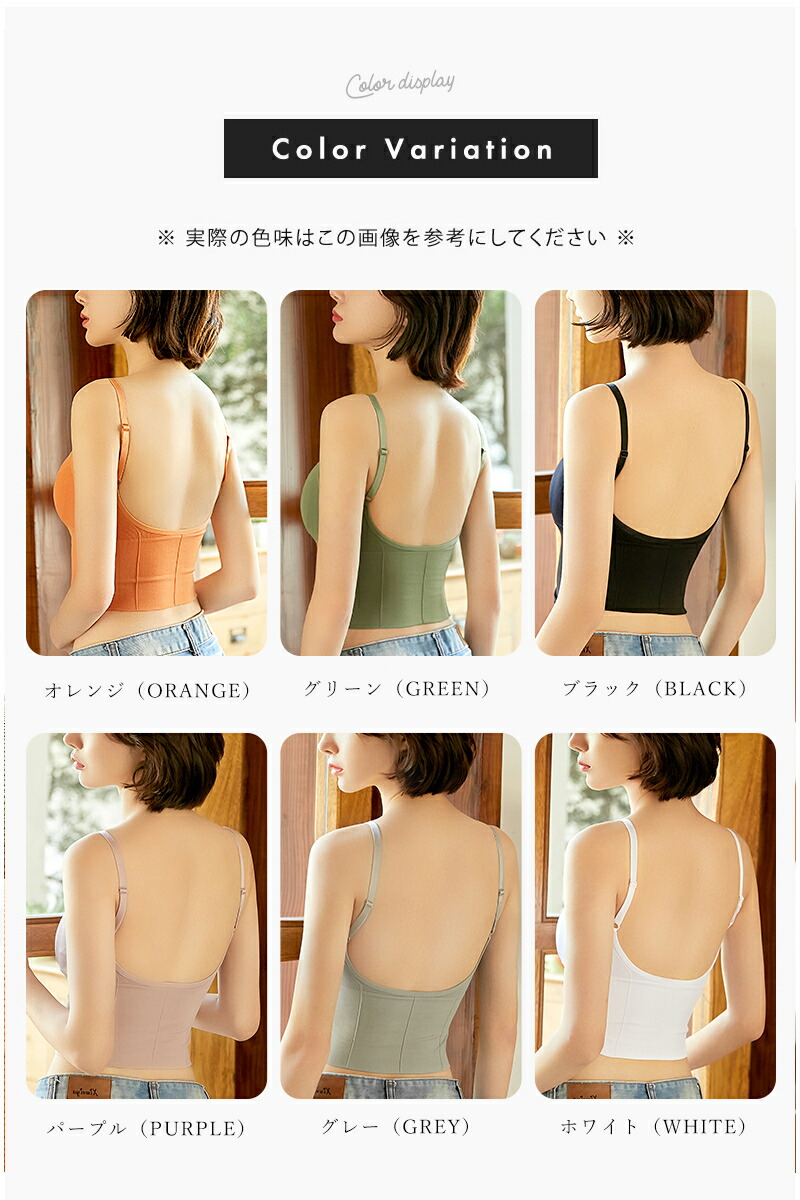 ブラトップ 背中開き Uパック ブラキ インナー 下着 ナイトウエア 30%Off ブラック(black) グリーン(green) ホワイト(white) オレンジ(orange) パープル(purple) グレー(grey)
