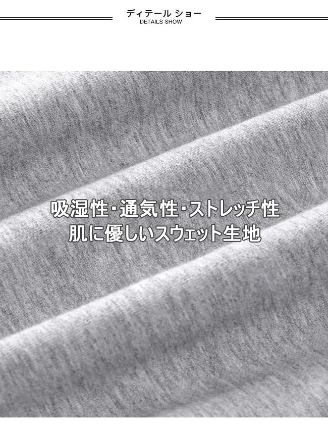 吸湿性・通気性に優れた薄手スウェット生地を使用、更に快適感をもたらす