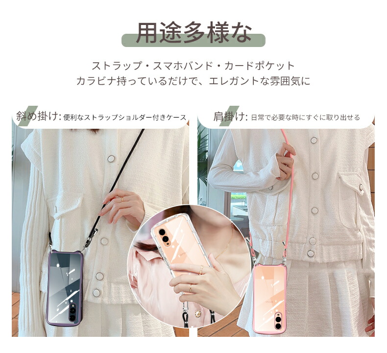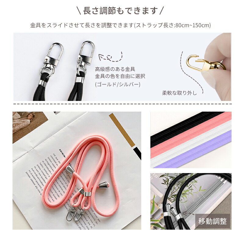 ・クリア(透明)商品の特徴 当店人気商品、斜め掛けロングストラップ付きの便利でスタイリッシュなスマホケースです。