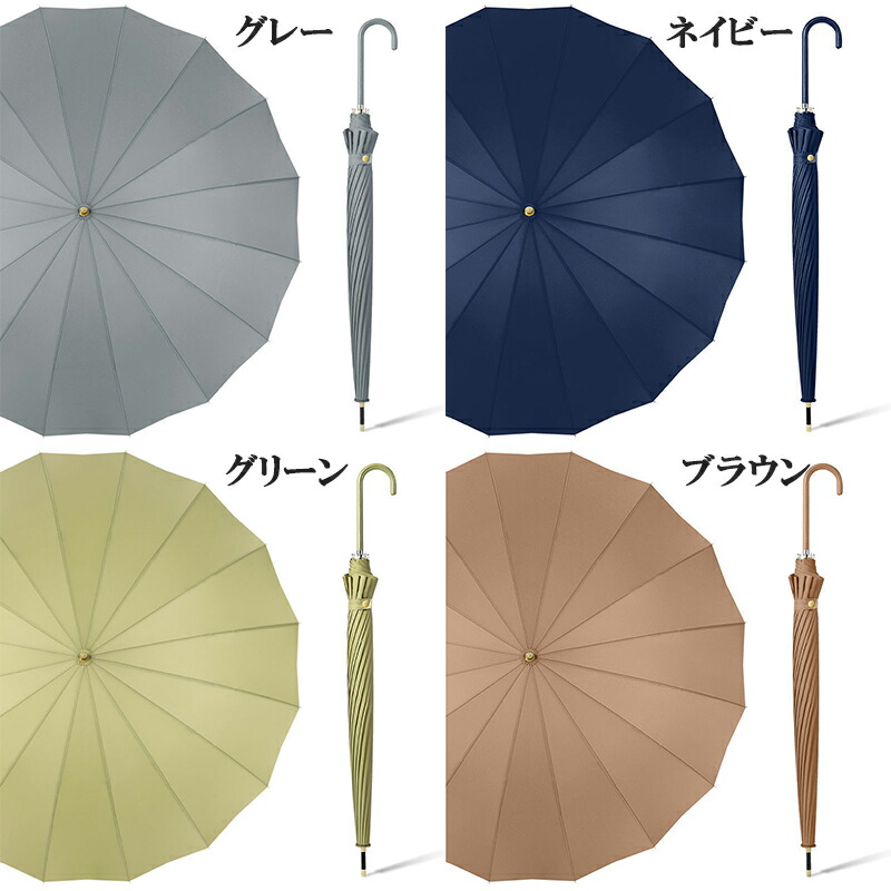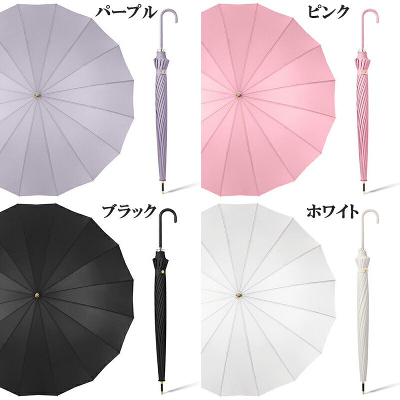 傘 長傘 大きめ 16本骨 無地 撥水 バッグ 小物 ブランド雑貨 続々登場 パープル ピンク ブラック ホワイト グレー ネイビー グリーン ブラウン