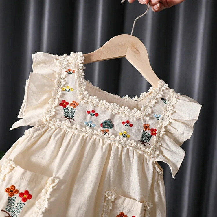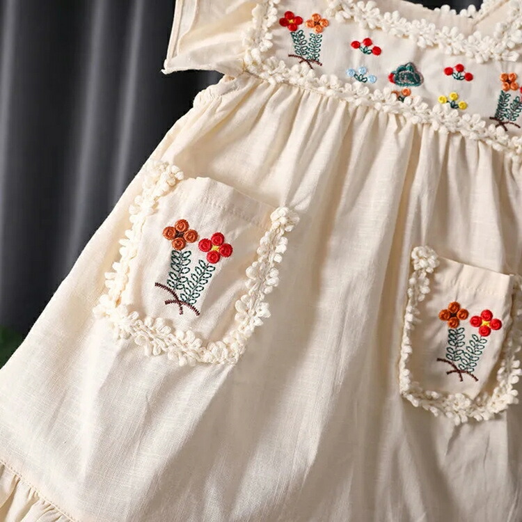 ワンピース 春 女の子 キッズ ノースリーブ ワンピース春 夏 かわいい 刺繡 花柄 森ガール キッズ女児 ベビー 子供服 春服 夏服 結婚式 カジュアル 80 発表会