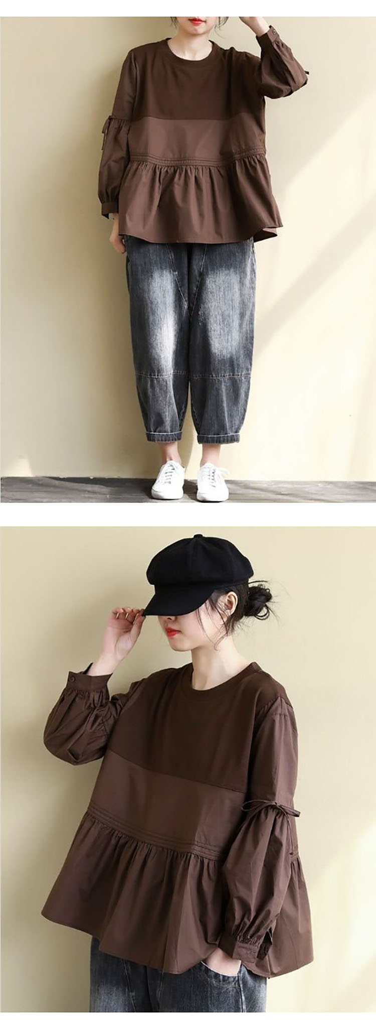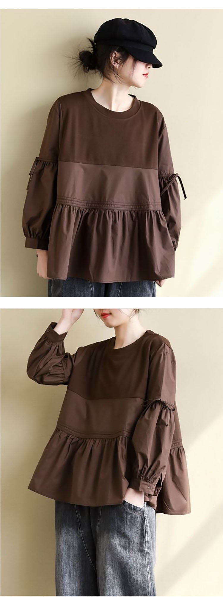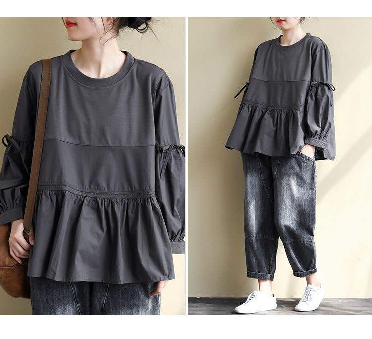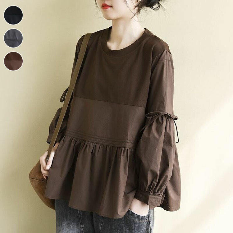 Tシャツ フリル ブラウス 春 レディース 長袖 大きめ フレア 体型カバー フリーサイズ 大きいサイズ プルオーバー 無地 きれいめ 春秋 韓国ファッション シンプル