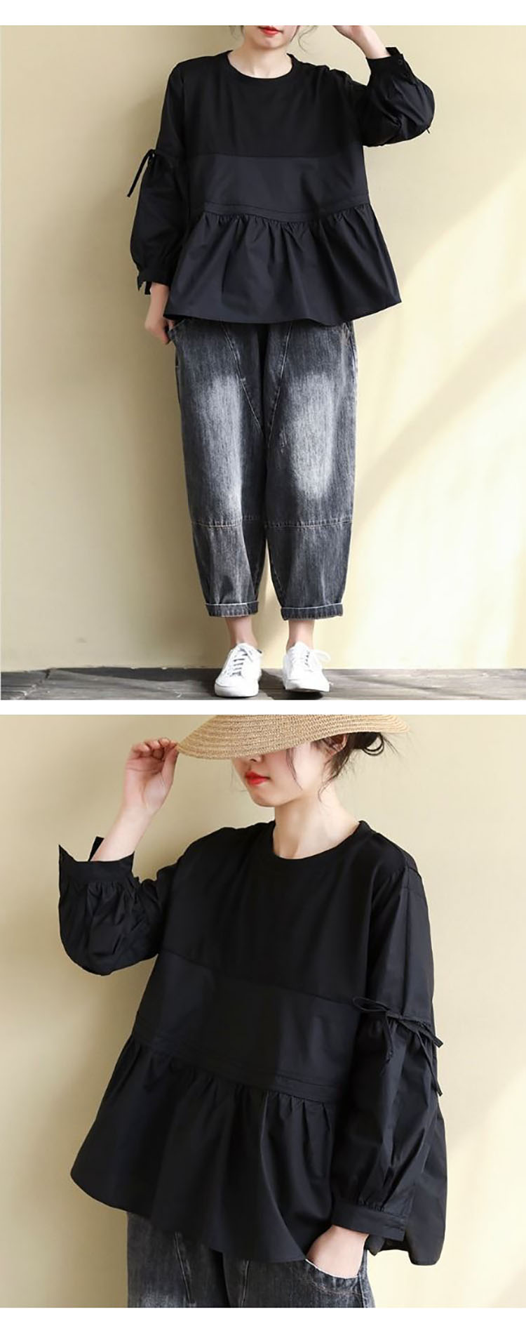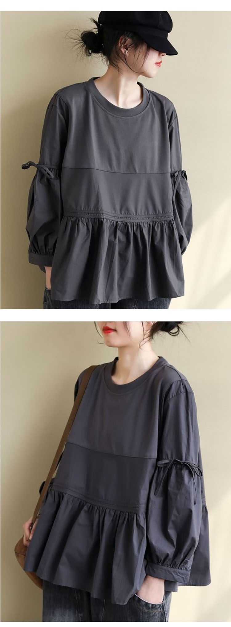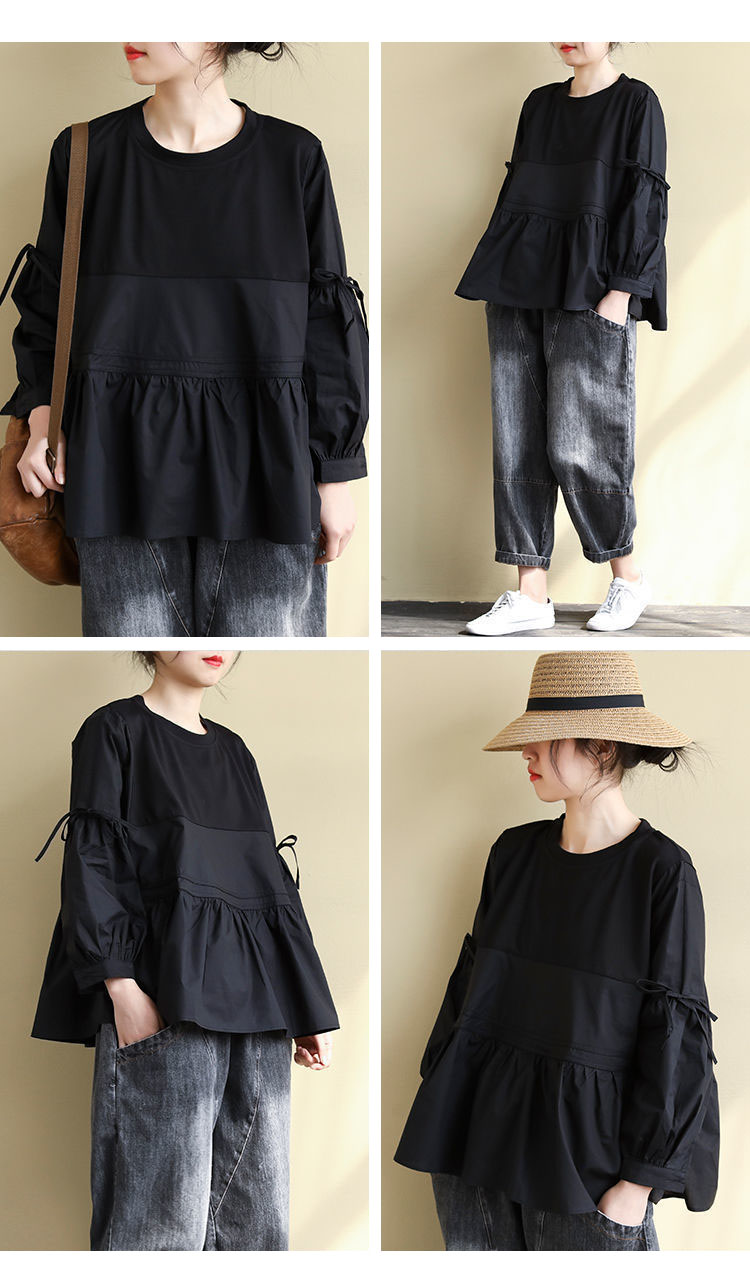 Tシャツ フリル ブラウス 春 レディース 長袖 大きめ フレア 体型カバー フリーサイズ 大きいサイズ プルオーバー 無地 きれいめ 春秋 韓国ファッション シンプル