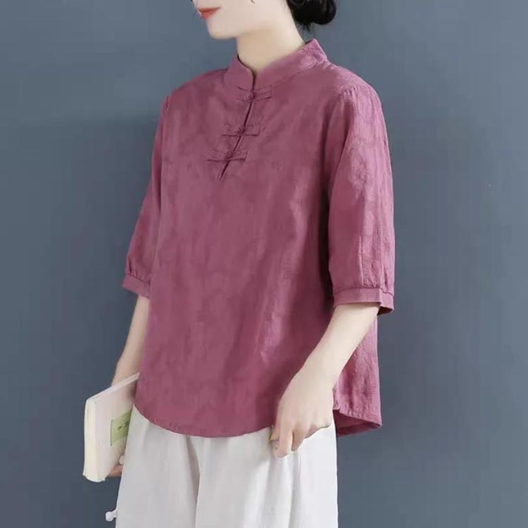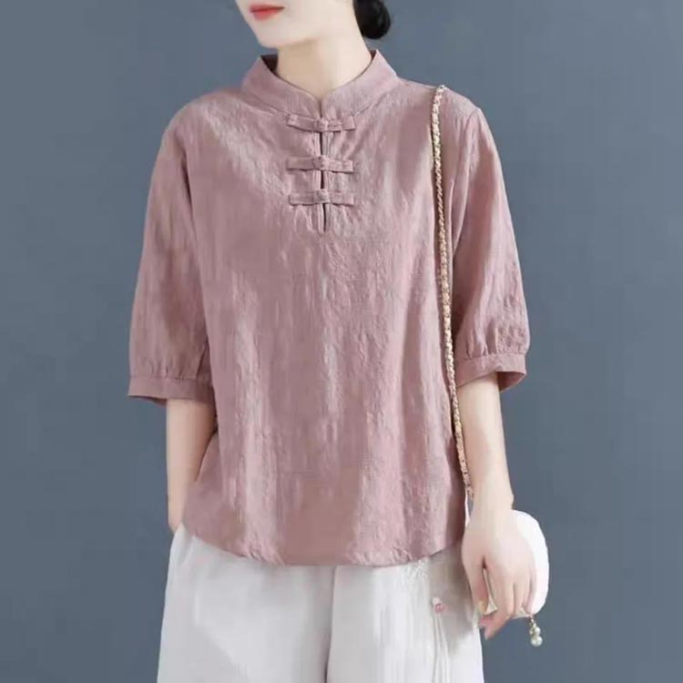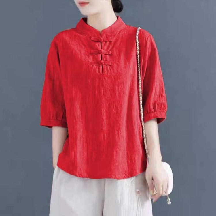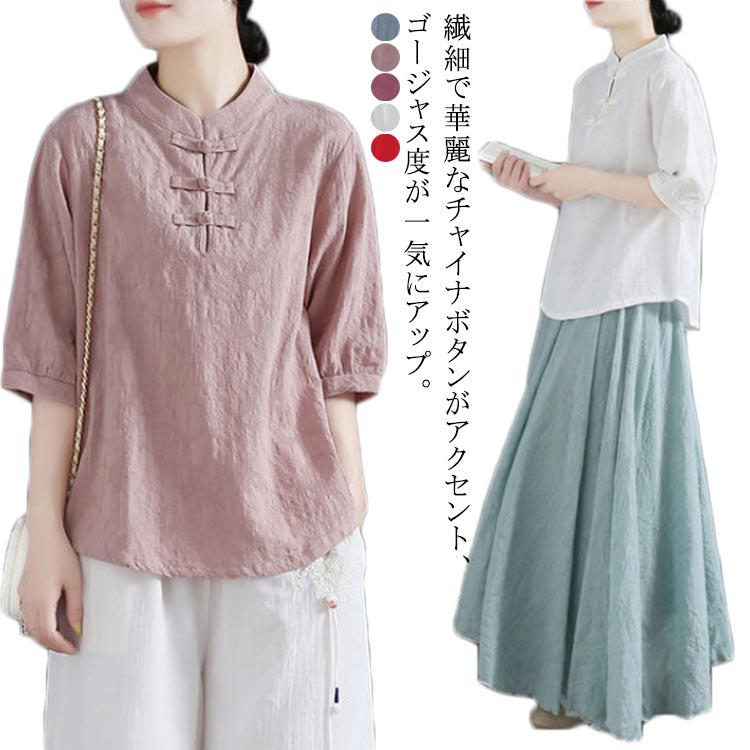 リネンブラウス リネン チャイナカラー トップス シャツ ブラウス 続々登場 ブルー ピンク レンガ色 ホワイト レッド M L XL 2XL 3XL 4XL
