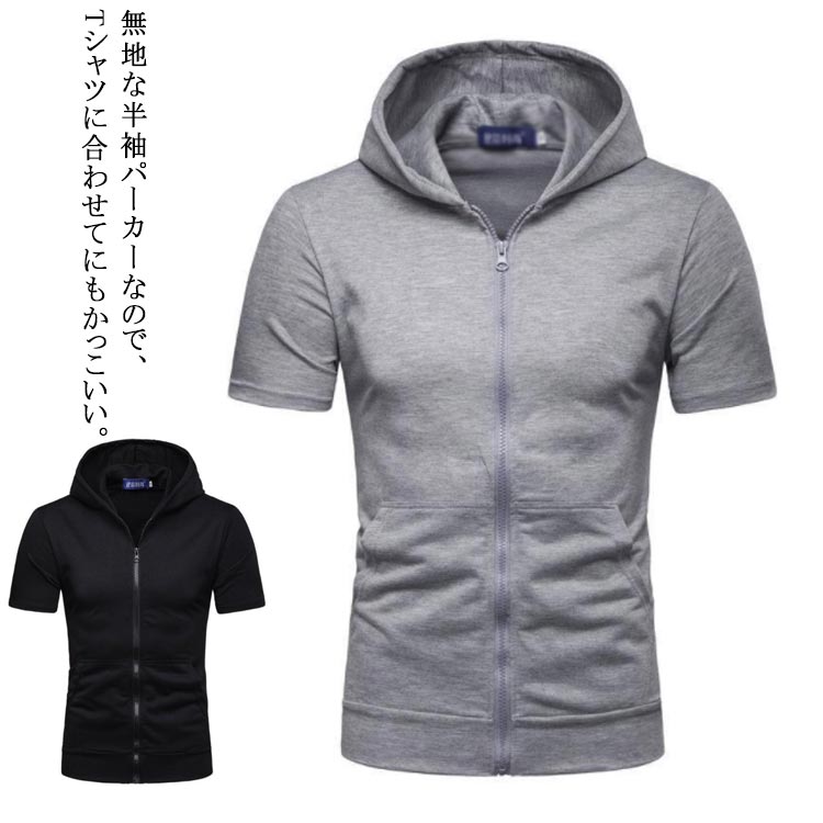 パーカー 半袖 メンズ ジップアップパ トップス パーカー 続々登場 グレー ブラック S M L XL 2XL 3XL