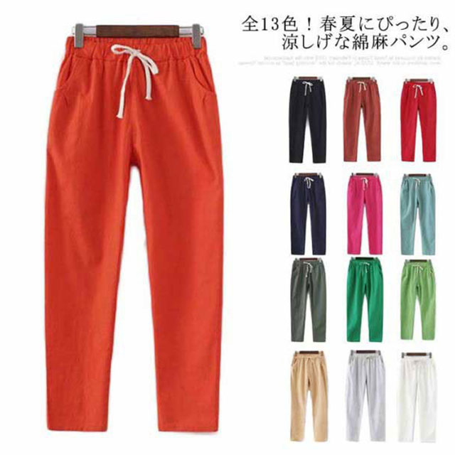 リネンパンツ 綿麻パンツ レディース レディースファッション 新登場! ホワイト ブラック ベージュ カーキ ライトグレー ネイビー ダークグリーン ライトグリーン レード1 オレンジ レード2 レード3 グリーン M L XL 2XL 3XL