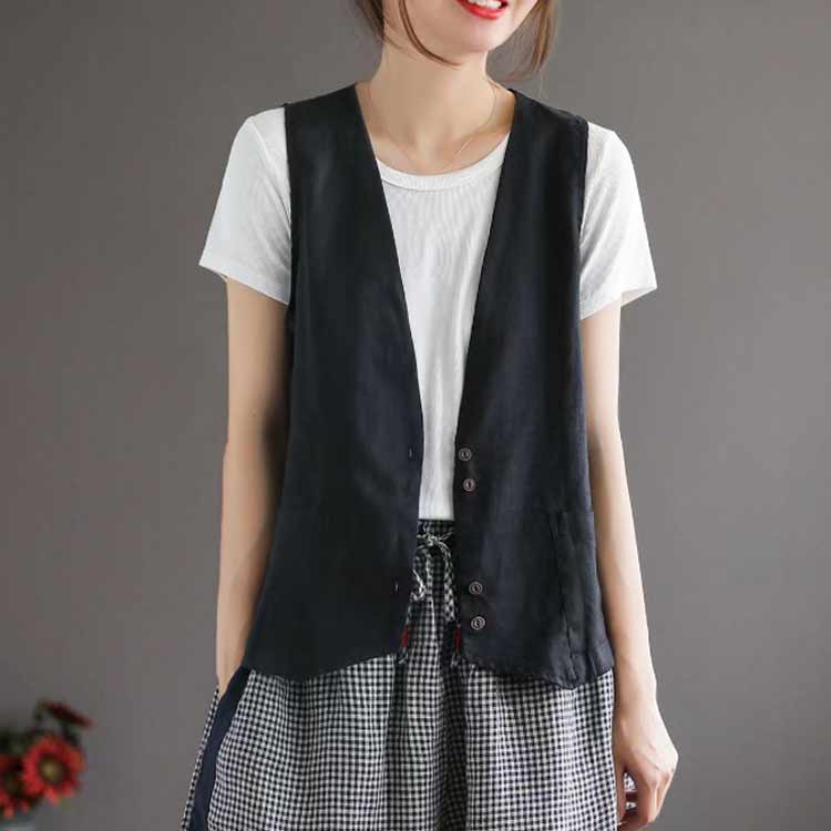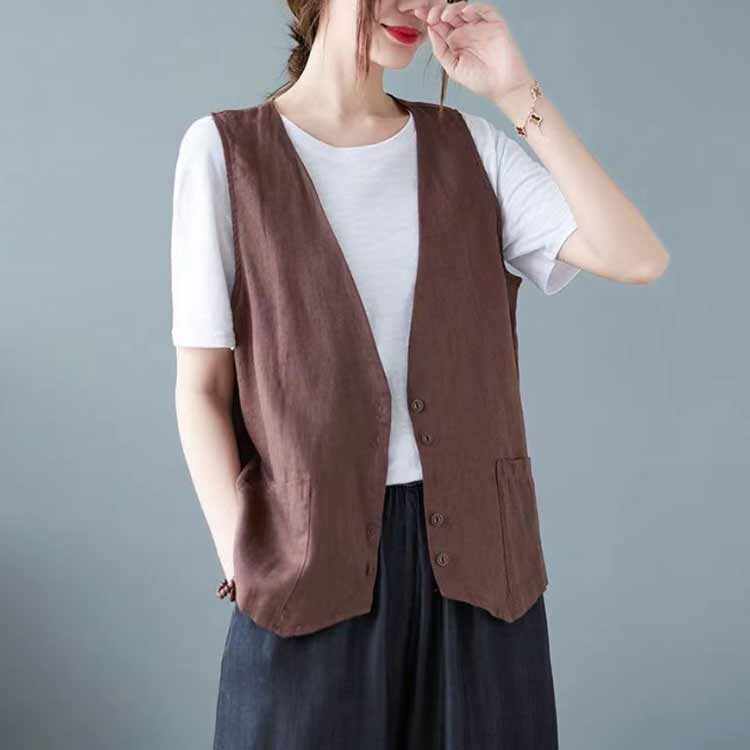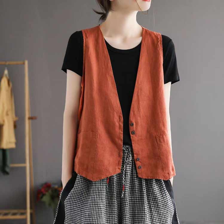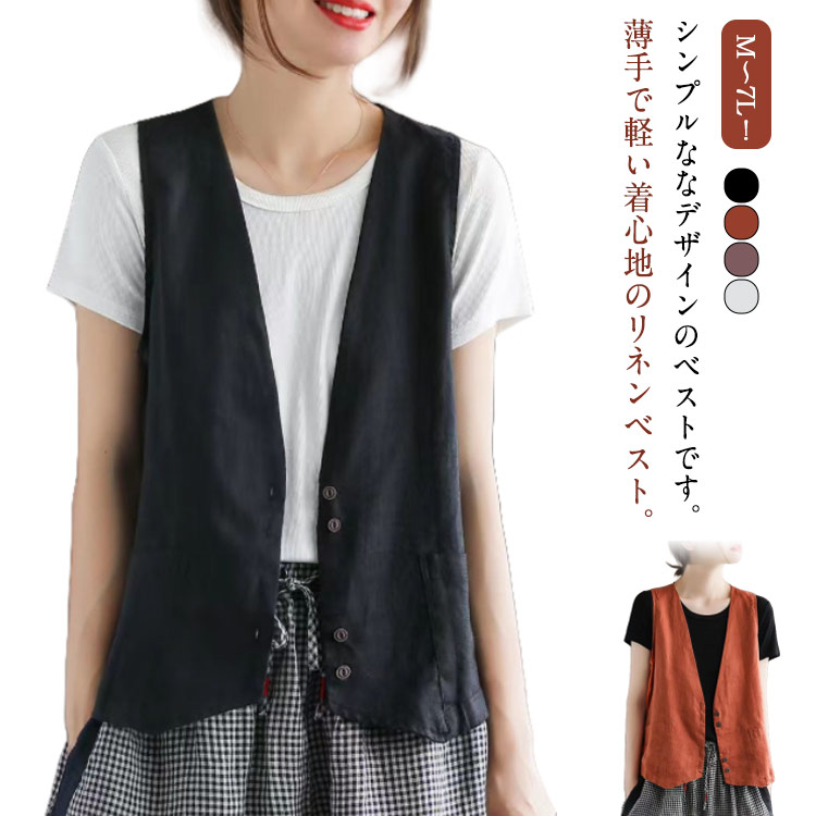 サマーベスト ベスト 綿麻 無地 レデ トップス ベスト 豊富な品揃え オレンジ ライトグレー ブラック ブラウン M L XL 2L 3L 4L 5L 6L 7L