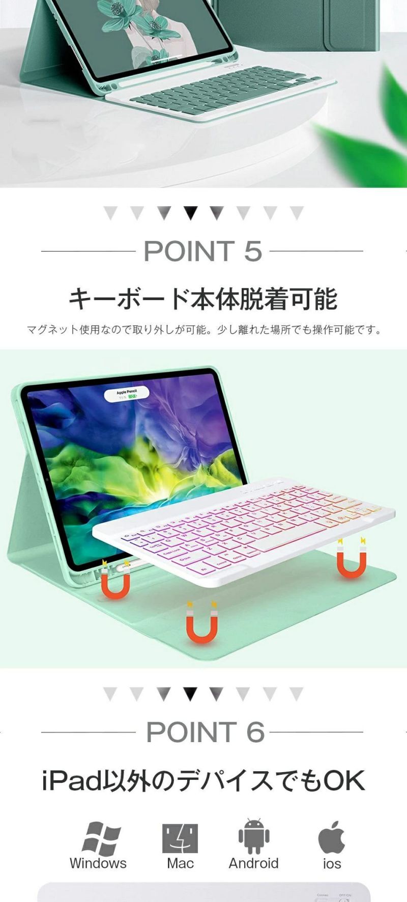 iPadキーボード iPad 10.9 グリーン ピンク イエロー ブラック ブルー パープル ダークグリーン iPad 9.7(2017/2018)Air2/Pro9.7 2019 iPad 10.2/Pro10.5/air3 Pro11(2022/2021/2018)/ Air4/air5 iPad Mini6 12.9(2018/2020/2022)7080 iPad 10代 10.9