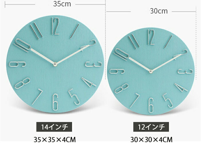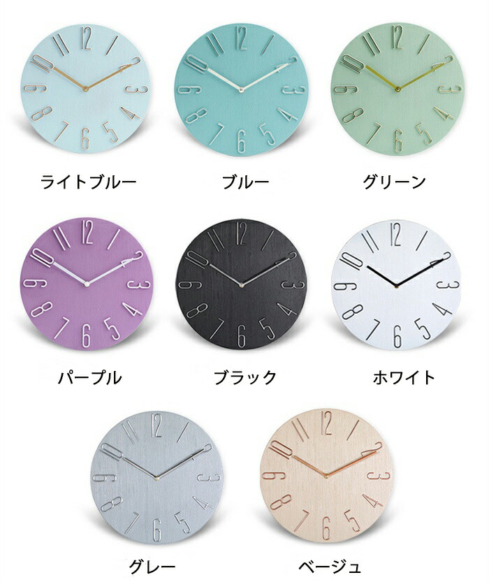 掛け時計 おしゃれ 北欧 静音 連続秒 ライトブルー ブルー グリーン パープル ブラック ホワイト グレー ベージュ 12インチ 14インチ