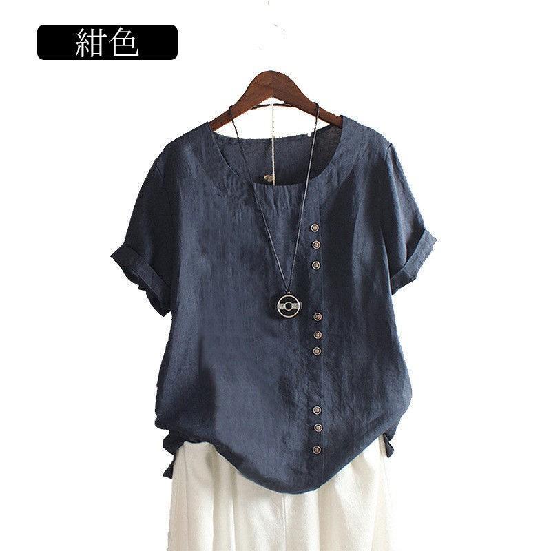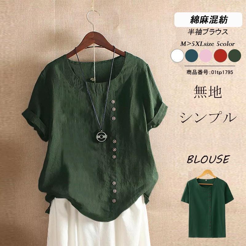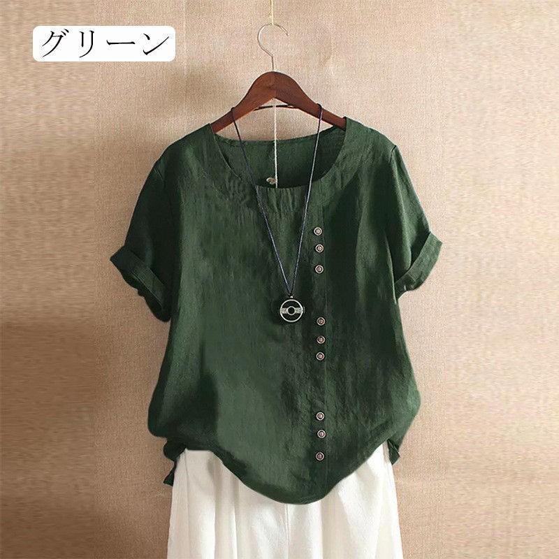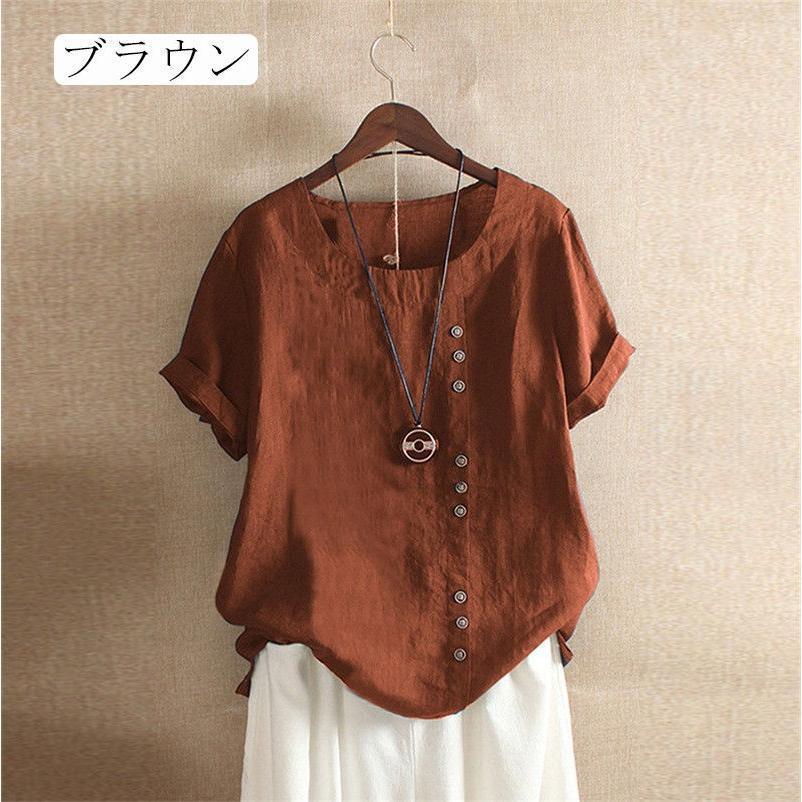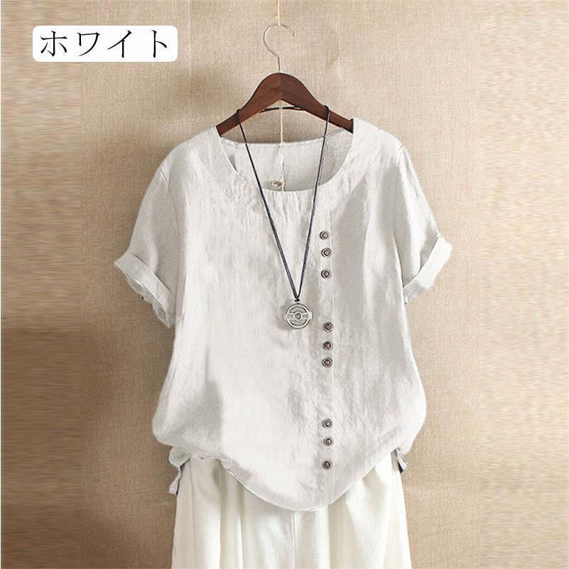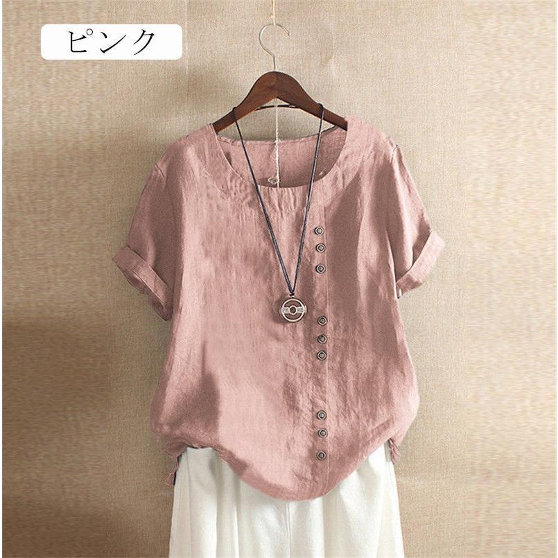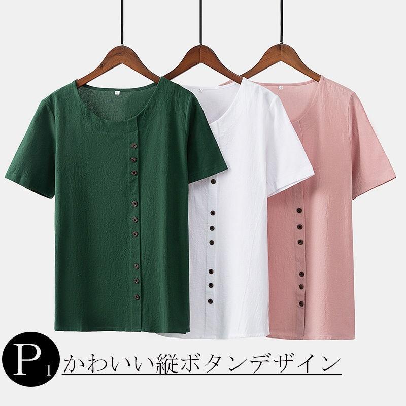 シャツ 半袖 無地 ボタンデザイン レディース tシャツ トップス リネン 着痩せ 体型カバー プルオーバー カジュアル ゆったり 着まわし 夏 50代 40代 30代