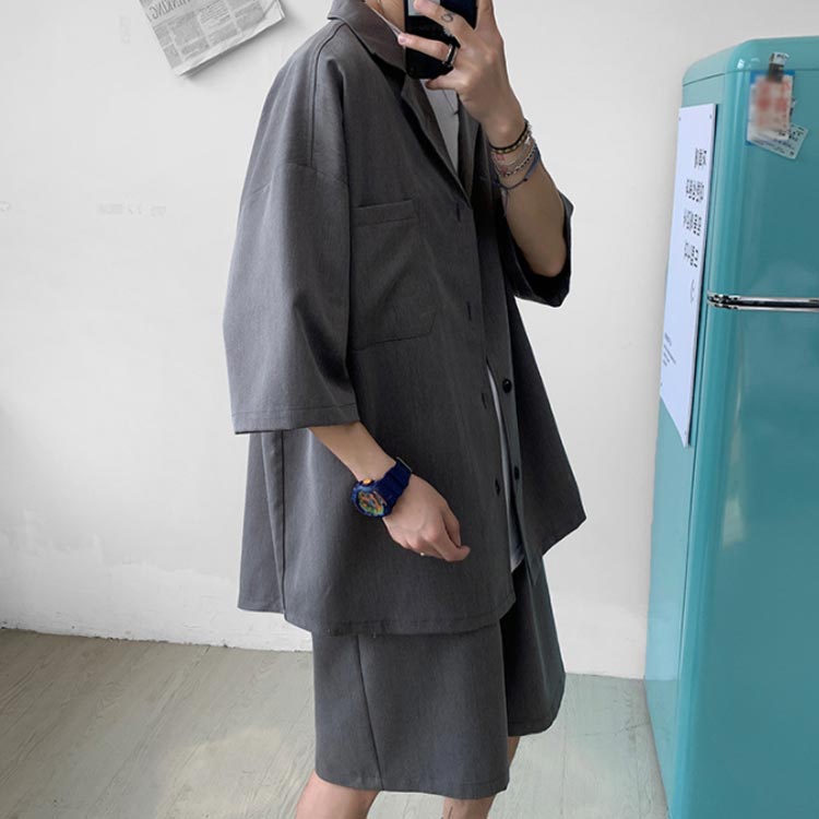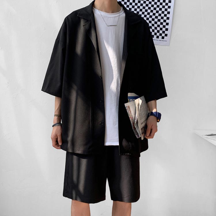 サマースーツ 半袖 セットアップ メンズ 上下セット サマーセット 5分袖シャツ ショートパンツ ハーフパンツ 半ズボン 大きいサイズ ビッグシルエット セット カジュアル 韓国風 春夏 夏服 レ 夏