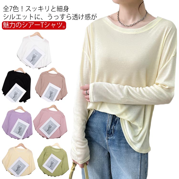 冷感 tシャツ シアー 夏 UV 無地 トップス Tシャツ カットソー 通販 ホワイト ブラック モカ パープル ピンク イエロー グリーン