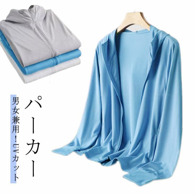パーカー 長袖 男女兼用 冷房対策 ジャケット メンズ UVカット 夏用 薄手 吸汗速乾 レデイーズ 涼しい フード付き 日焼け止め服 紫外線対策 アイスシルク 接触冷感 ひんやり 無 UV