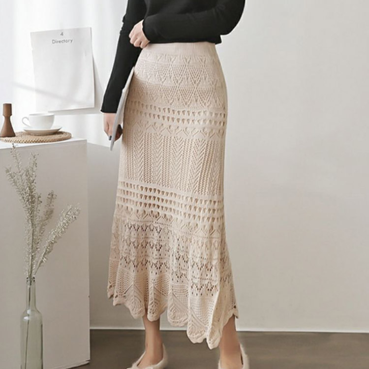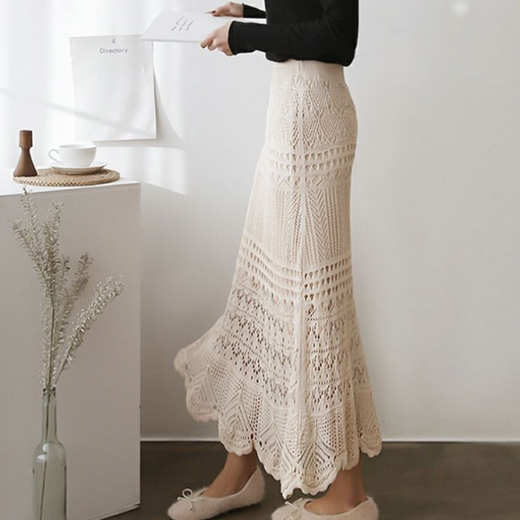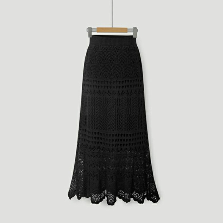 マキシ丈 ニットスカート スカート サマーニット 透かし編み 透かし編みスカート タイトスカート ウエストゴム マーメイドスカート M ニット XL 大人 春夏 エレガント ロングスカート きれいめ