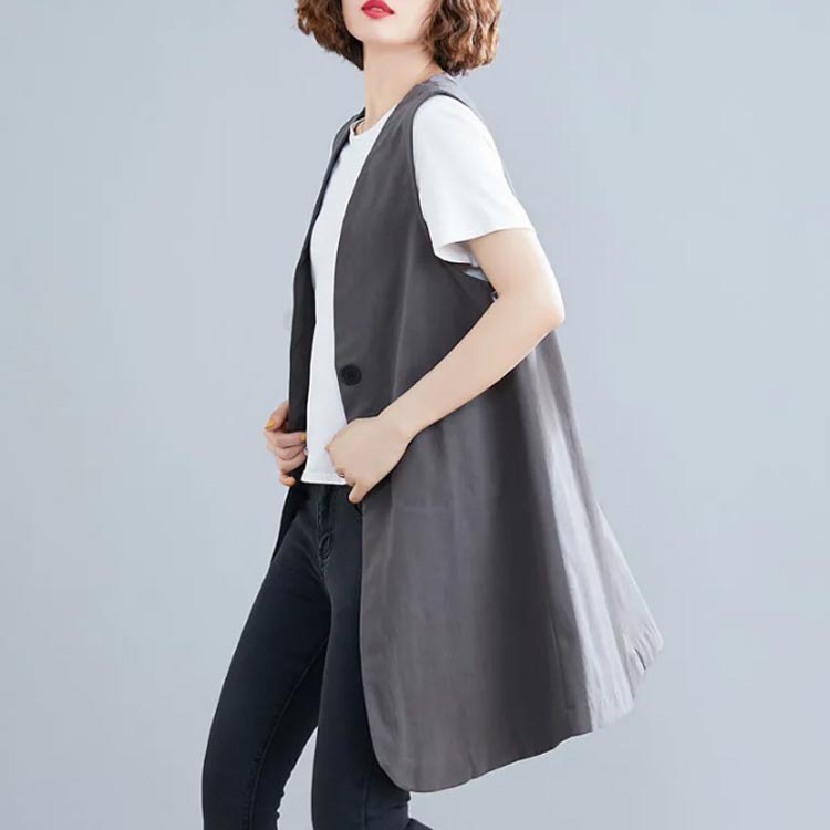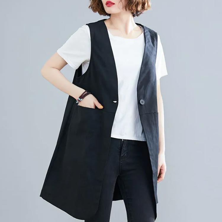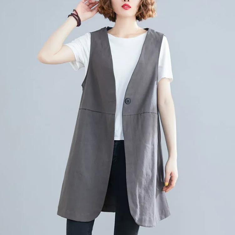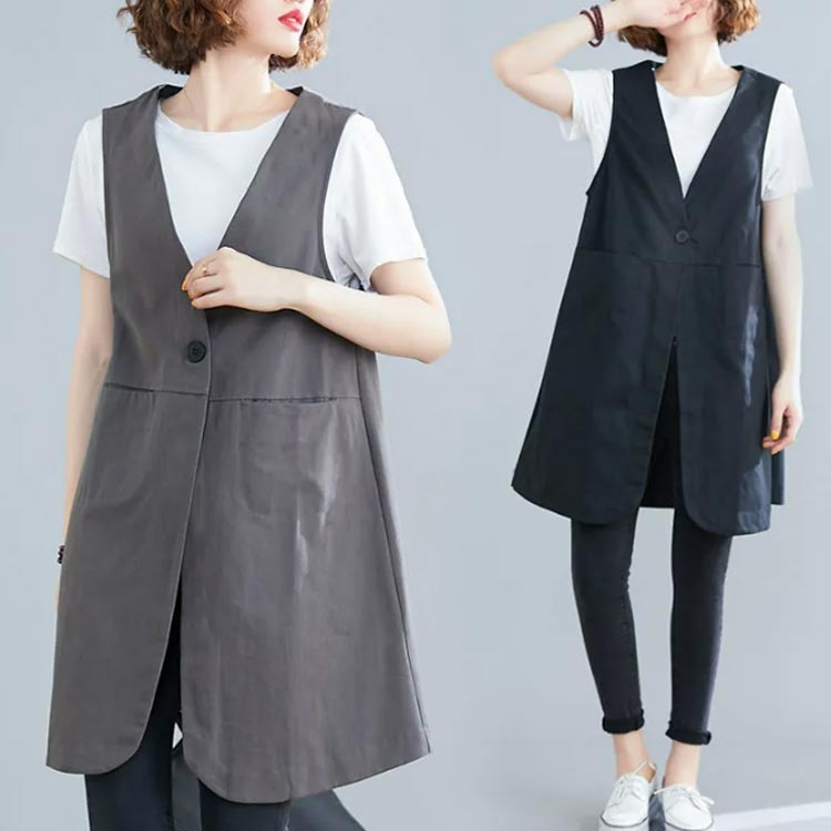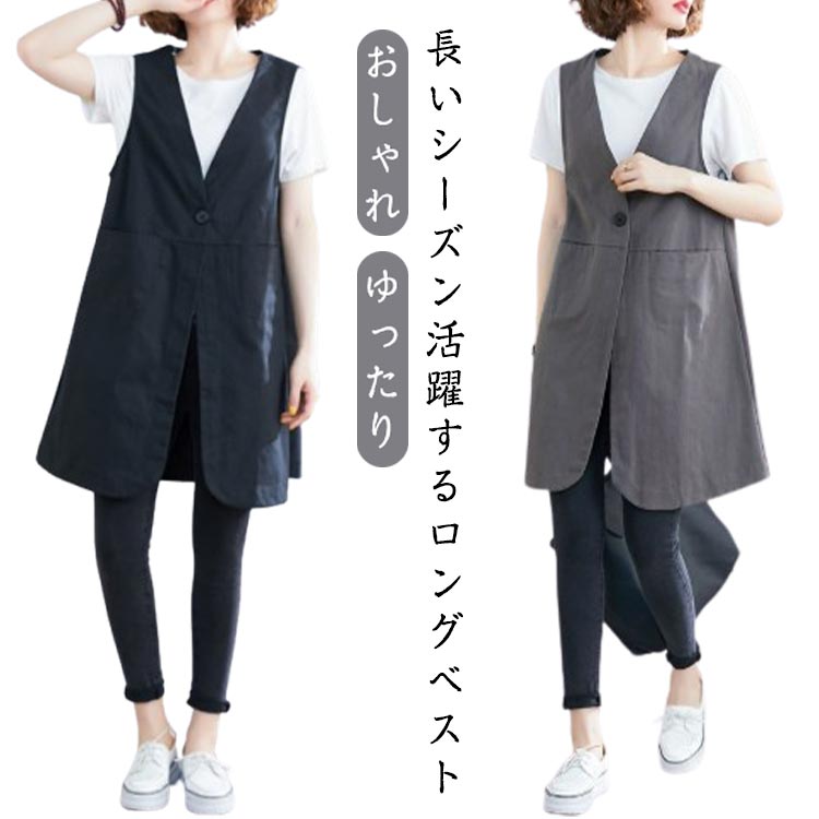 ロングベスト 羽織 ロングジレ 春 お トップス ベスト 豊富 ブラック グレー L XL 2XL 3XL