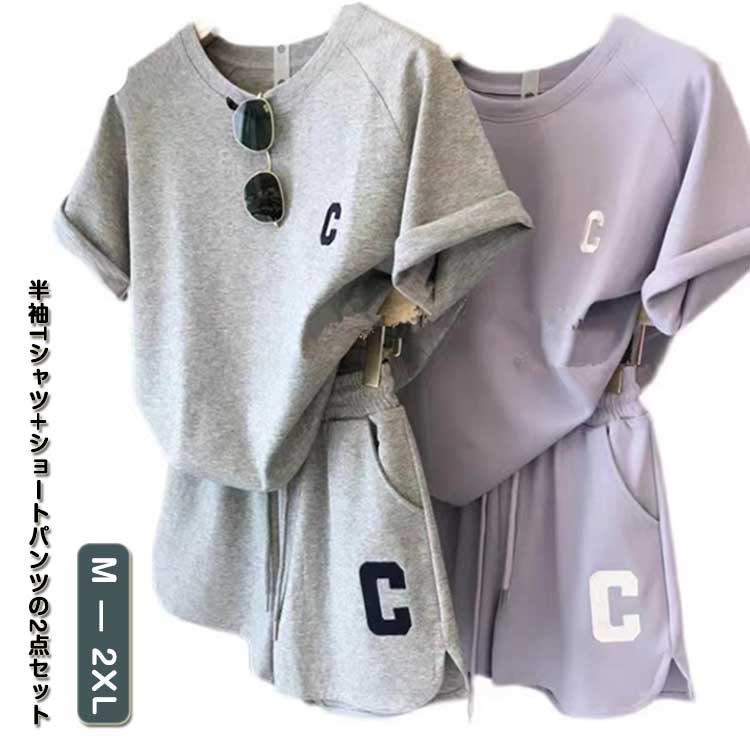 ショートパンツ スウェット上下セット トップス Tシャツ カットソー 特集 パープル上下セット グレー上下セット M L XL 2XL