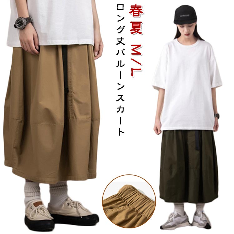 ゆったり ウエストゴム ロング丈 おし レディースファッション 通販 カーキー グリーン M L