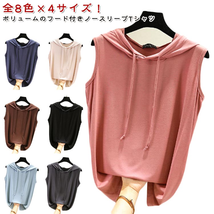 ノースリーブパーカー 春夏 タンクトッ トップス タンクトップ 早い者勝ち ブラック ホワイト 肌色 ピンク ライトブルー ダークブラウン ネイビー グレー M L XL 2XL