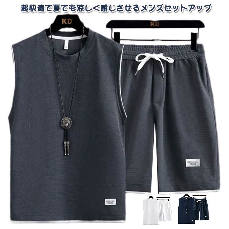 スウェット トップス セットアップ ショートパンツ カットソー メンズ トレーナー スウェット上下セット ハーフパンツ ズボン 上下セット ノースリーブ 袖なし ジャージ tシャツ スウ ワッフル生地