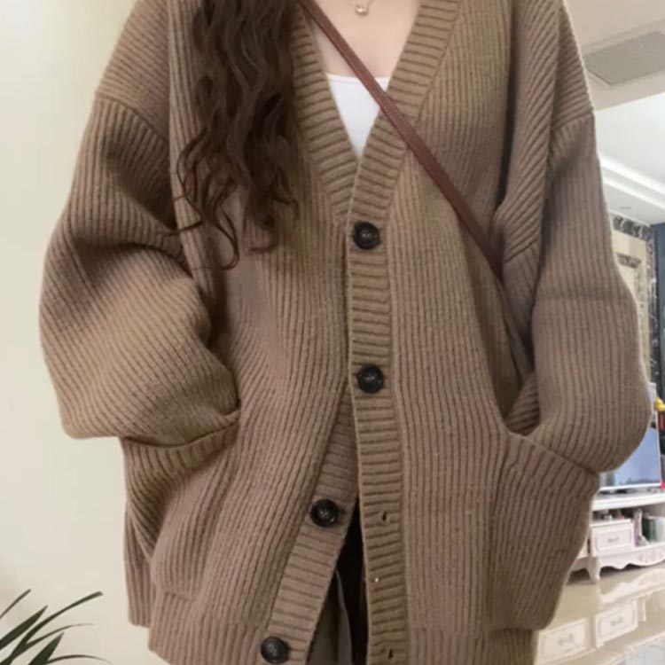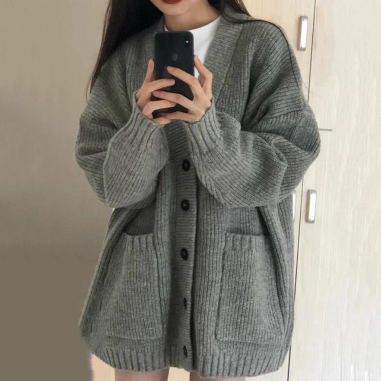 韓国ファッション 体型カバー ルーズ レディースファッション 早い者勝ち グレー ブラウン アイボリ カーキグリーン ブラック ブラウン2