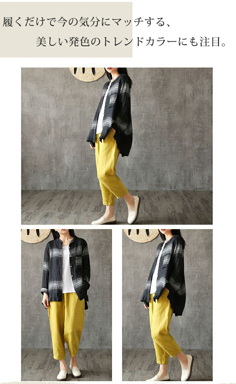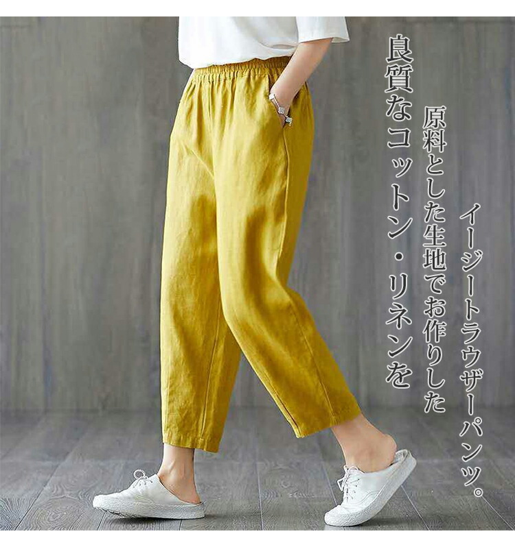 【送料無料】パンツ ズボン リネンパンツ イージーパンツ 9分丈パンツ デーパートパンツ ボトムス ワイド 大きい リラックス 涼しい 透気 ゆったり カジュアル レディース メンズ 男女 ファッション プレゼント 誕生日 綿麻生地 コットンリネン 薄手 無地 春 夏 秋 快適