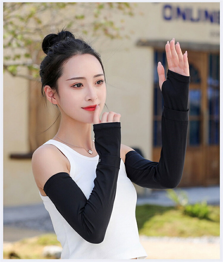 紫外線カット アイススリーブ 指付き スポーツ アウトドア 新登場! ブラック グレー ブルー アイボリー ホワイト