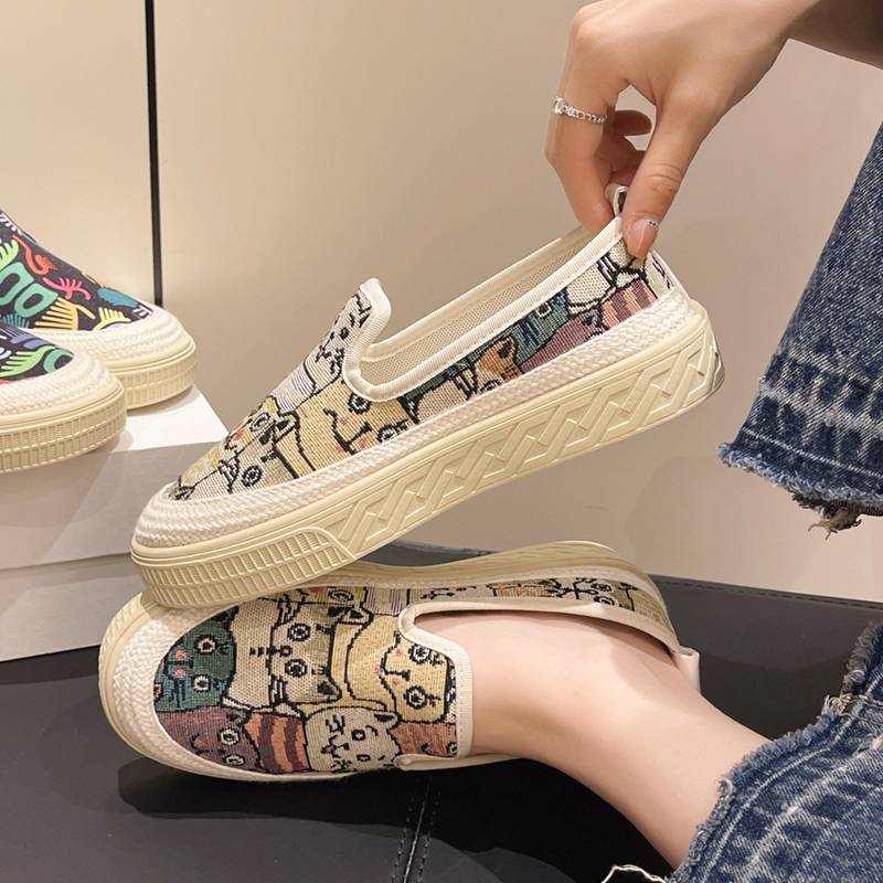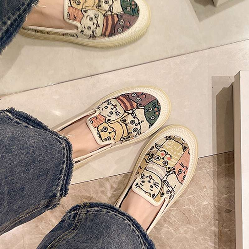 エスパドリーユ レディース 猫柄 厚底 22.5 cm 23.0 cm 23.5 cm 24.0 cm 24.5 cm 25.0 cm ベージュ ブラック