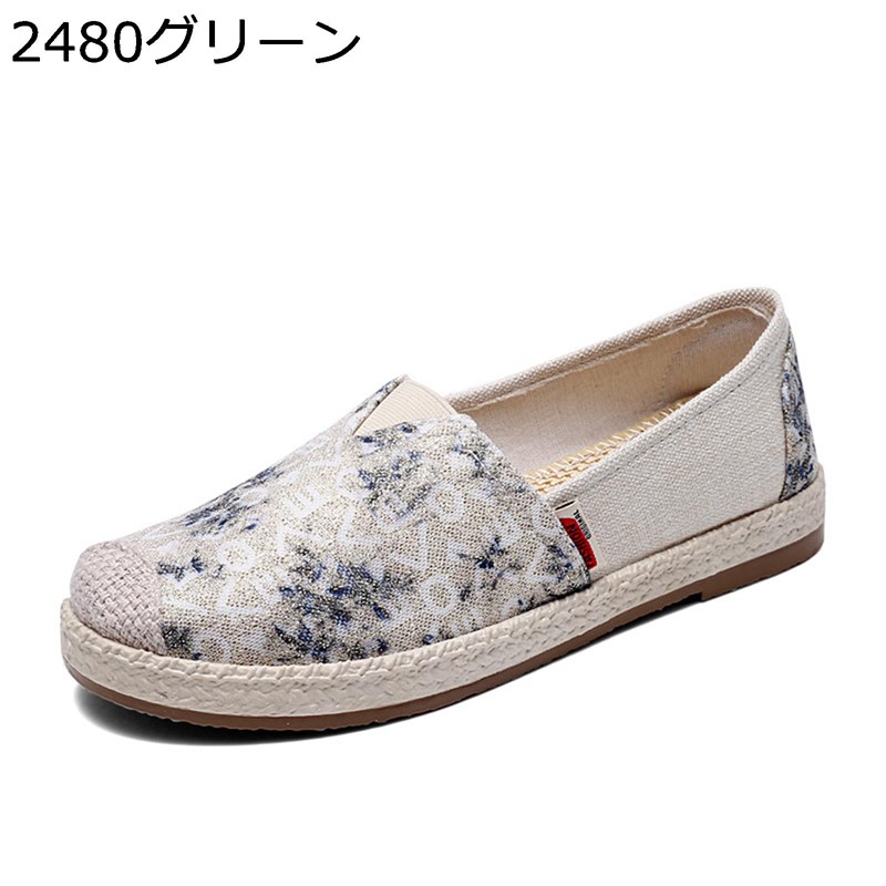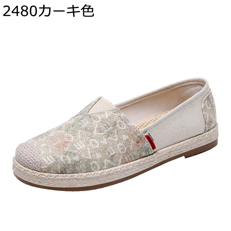レディース スリッポン 花柄 英字柄 23.0 cm 23.5 cm 24.0 cm 24.5 cm 25.0 cm 25.5 cm 2480ピンク 2480カーキ色 2480グリーン